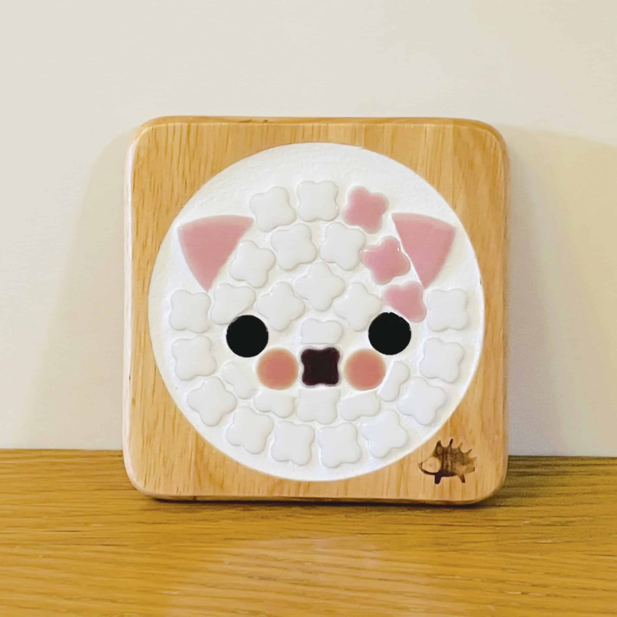 タイル雑貨のお店 Chobo 北歐風美濃燒馬賽克隔熱杯墊 粉耳奶油貓咪