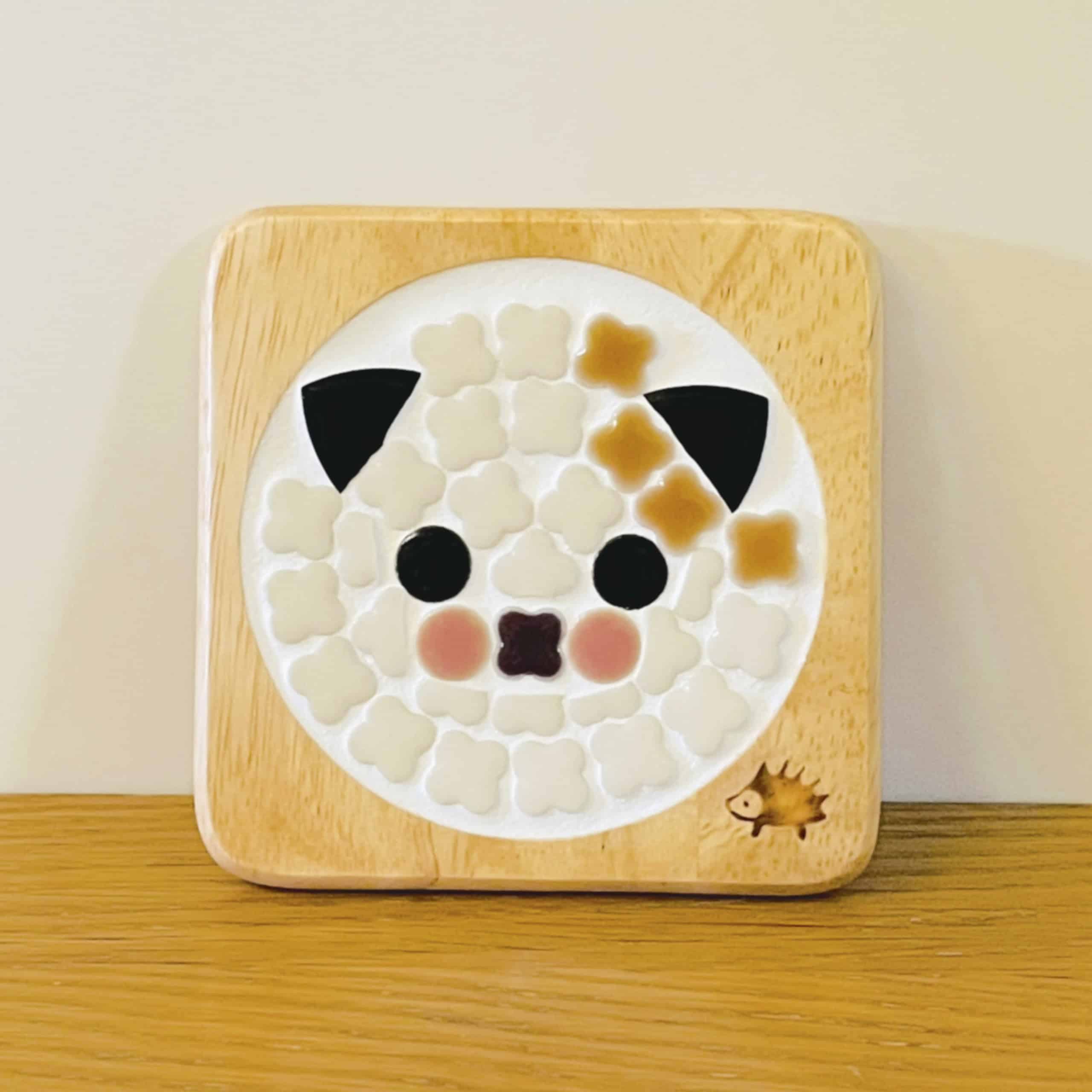 タイル雑貨のお店 Chobo 北歐風美濃燒馬賽克隔熱杯墊 黑耳奶油貓咪