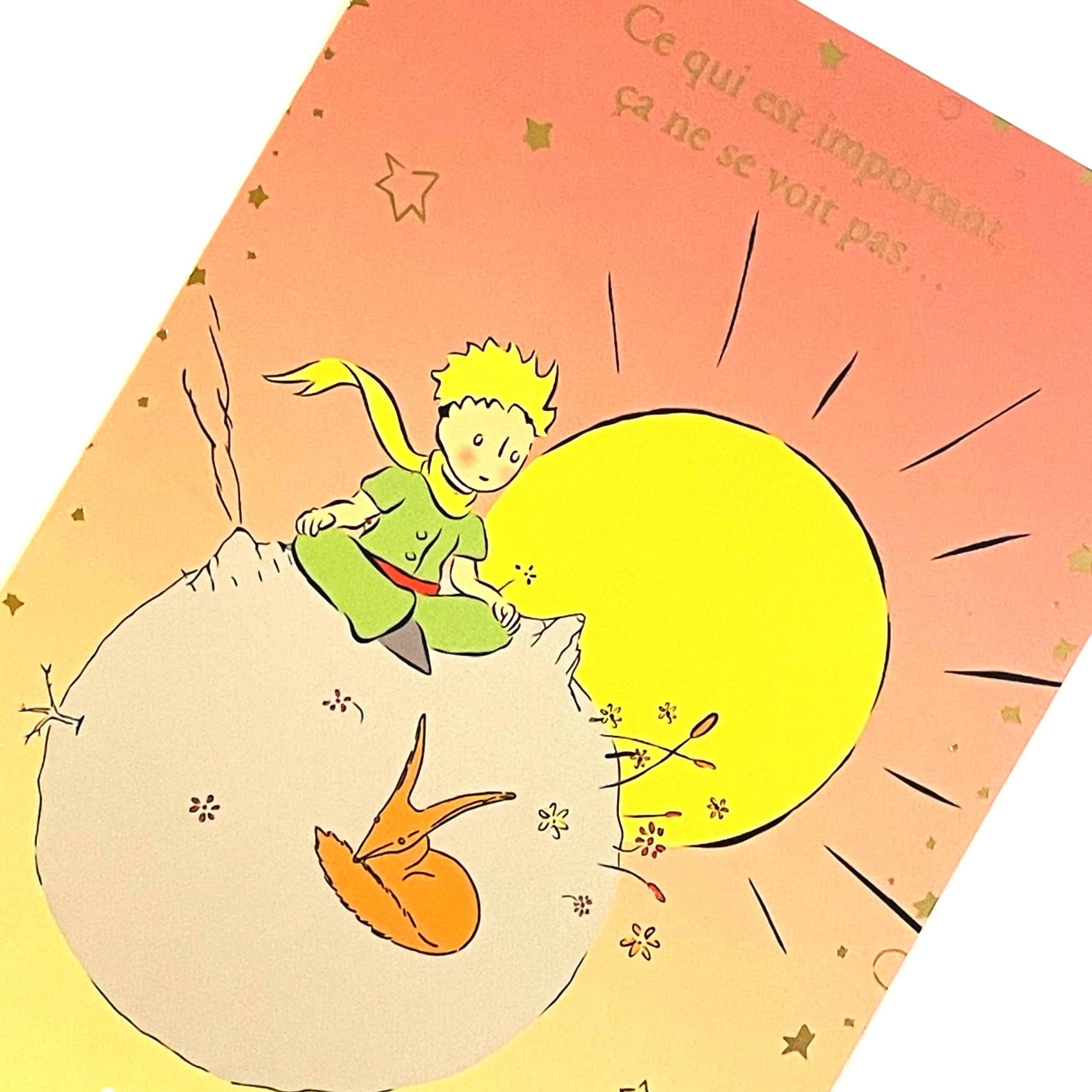 這款「重要的東西是看不見的」明信片,插畫源自 Antoine de Saint-Exupéry 經典作品《小王子》(Le Petit Prince),經正式授權改編,保留了原作中純真與哲思的核心精神,並於法國精美印製。