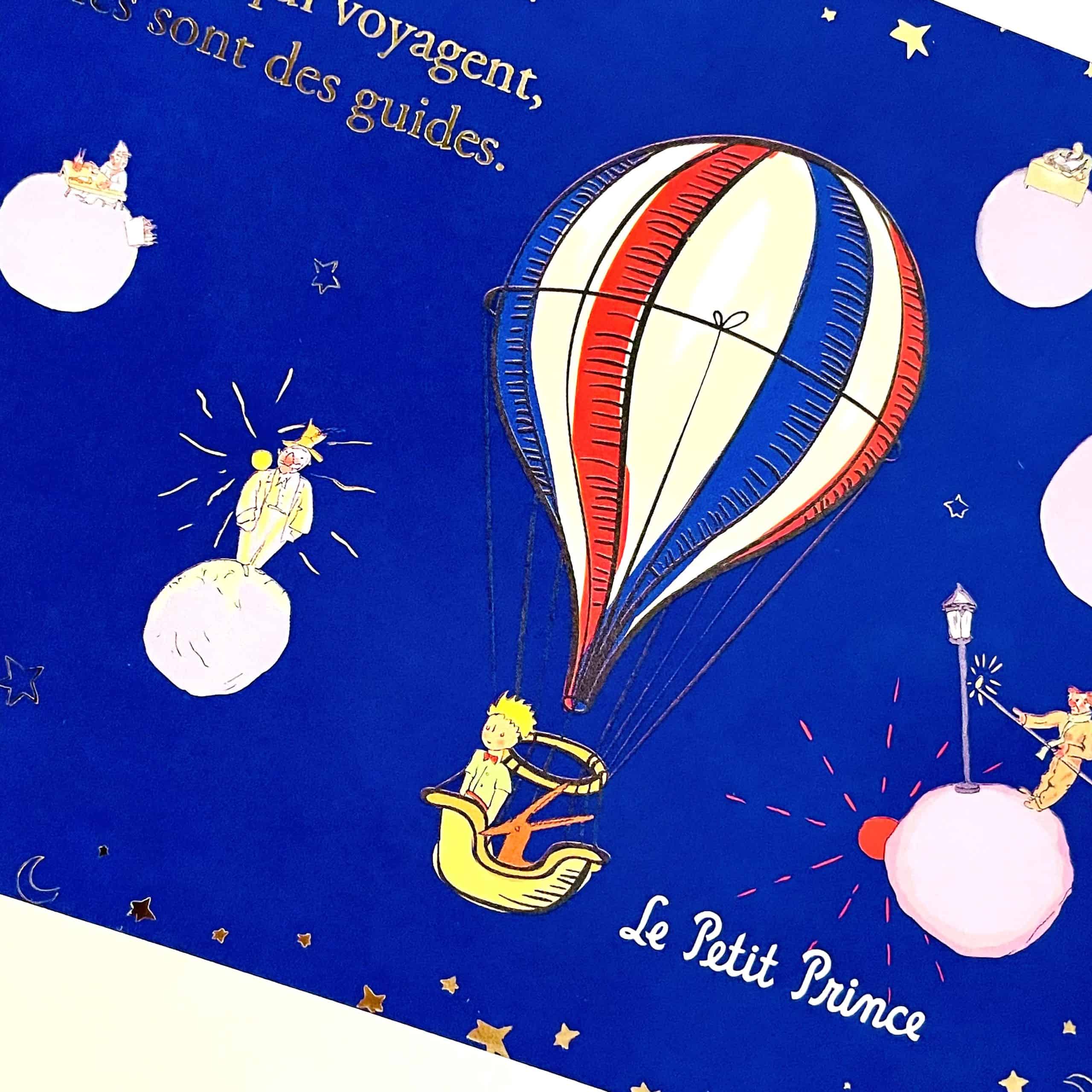 這款「對於旅人來說,星星是嚮導」明信片,插畫源自 Antoine de Saint-Exupéry 經典作品《小王子》(Le Petit Prince),經正式授權改編,保留了原作中純真與哲思的核心精神,並於法國精美印製。