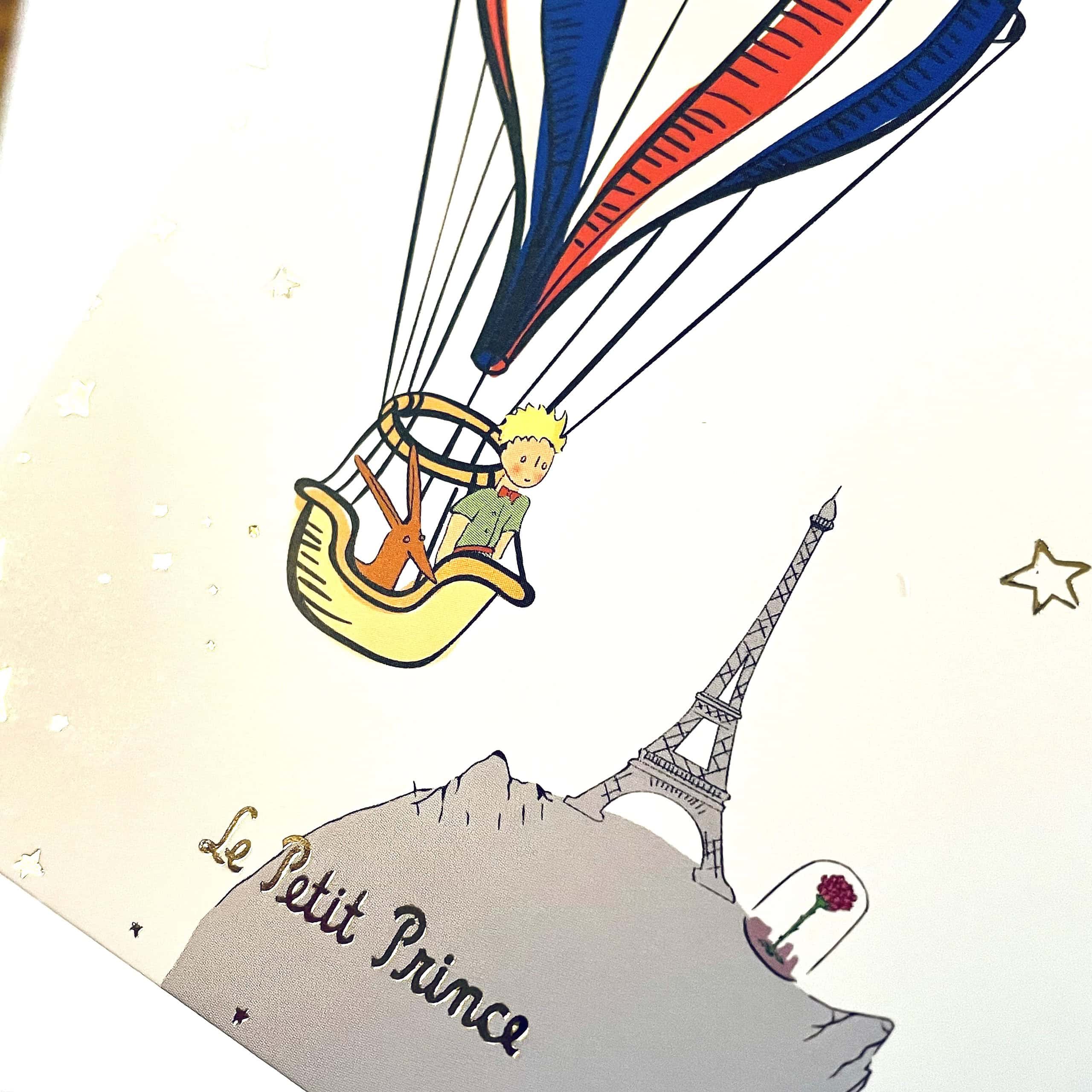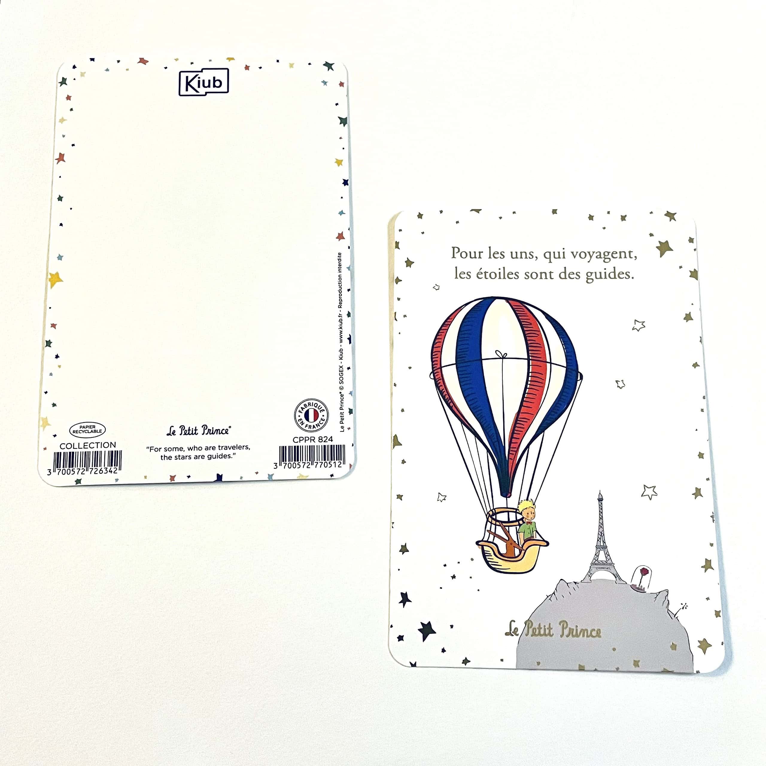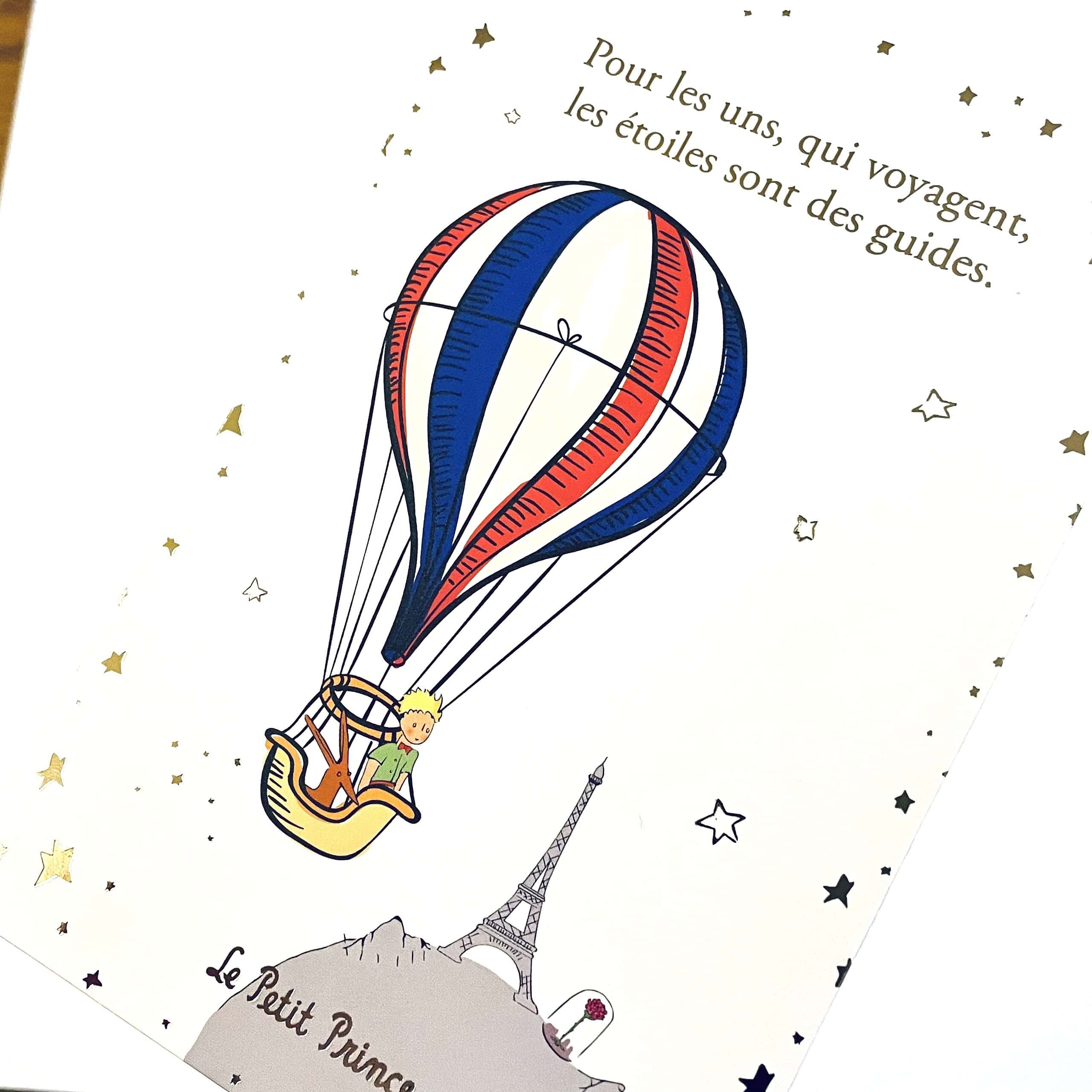 這款「對於旅人來說,星星是嚮導」明信片,插畫源自 Antoine de Saint-Exupéry 經典作品《小王子》(Le Petit Prince),經正式授權改編,保留了原作中純真與哲思的核心精神,並於法國精美印製。