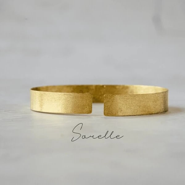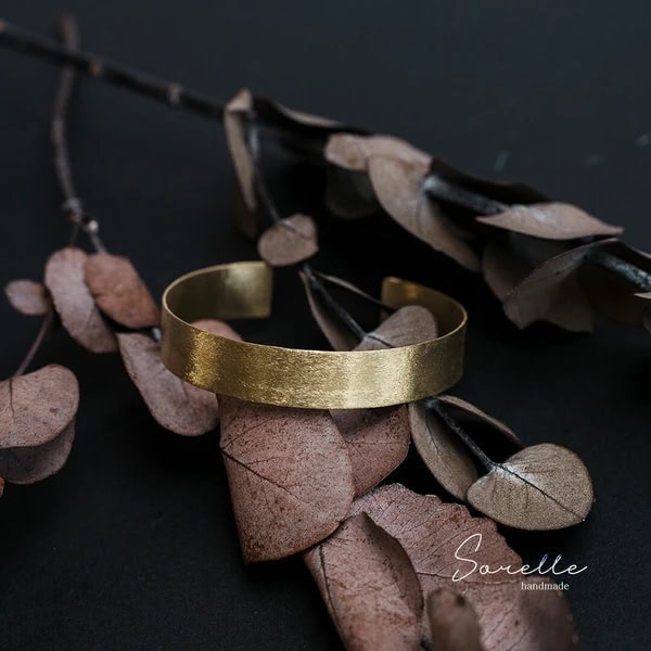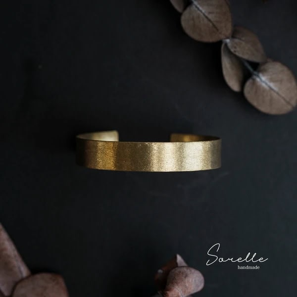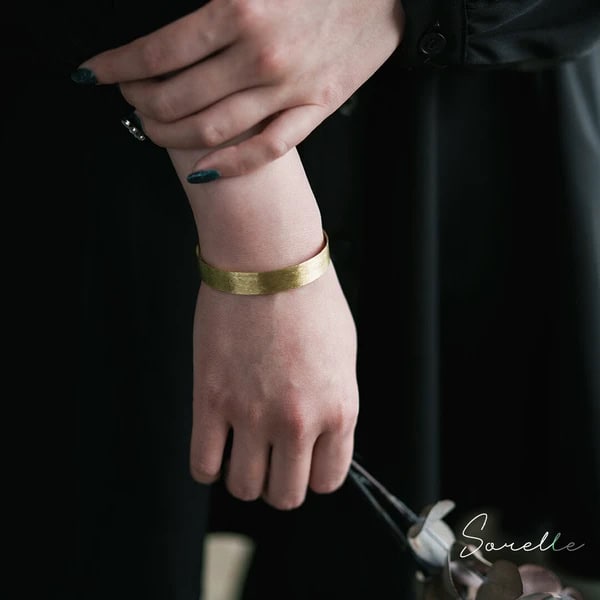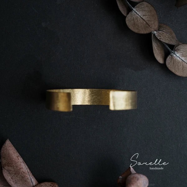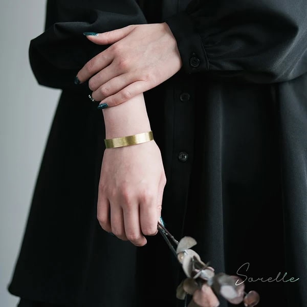 這款 Sorelle 手環材質為無垢真鍮,由日本富山職人使用傳統金屬加工技藝製成。手環寬度為1公分,以自信大方的外觀而脫穎而出,無論是搭配休閒服還是正式場合,都能展現出個人風格。